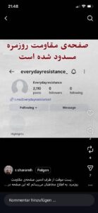 حساب مقاومت روزمره در اینستاگرام، مسدود شد؛ قبل از رفراندوم و گذار. درود به همه‌ی ریپورت‌کنندگان و حامیان انقلاب شیر و خورشید!